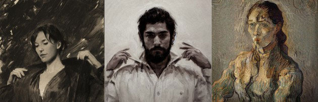 balra az eredeti festmény, középen a stílust utánzó MI alkotása, jobbra pedig egy olyan kép, amit a Glaze által módosított eredetiből hozott ki
