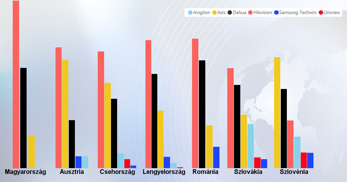 Szlovákia a meglepetések országa. A dobogó első három helyén ugyanazok állnak, mint Lengyelországban, de a negyedik helyen (az Axistól alig elmaradva) áll az Avigilon. A Samsung/Hanwha Techwin itt is stabilan mérhető, de az Univew mögött maradt.