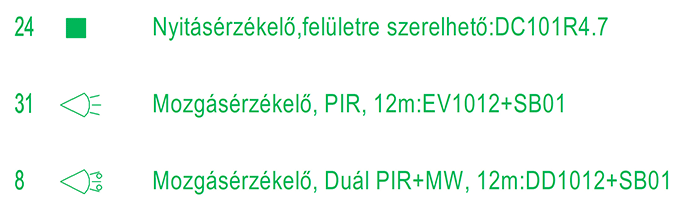 - Már a rajzon megadhatók olyan információk, melyek a rendszer felprogramozásához és beüzemeléséhez szükségesek. Ilyen például a zóna típus megadása és a területhez/partícióhoz rendelés.