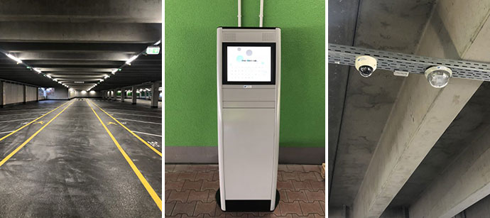 Az optimális megoldáshoz videós irányító rendszer és BLE helykijelzők kerültek telepítésre. Ez egy egyedülálló megoldás, amikor minden egyes parkolóhelynek nem csupán külön-külön kell a foglaltságát jelezni, de az érkező jármű rendszámtábláját is le kell olvasni. A kijelzők vezérlése Bluetooth Low Energy(BLE) rádiós kommunikációval történik, un. mesh hálózati konfigurációval. A Parksol címezhető BLE-jelzők könnyen telepíthetők, mivel csak egy tápegységet igényelnek, emellett nagyon praktikusak: RGB színspektrummal rendelkeznek, amely minden egyes jelzőhöz külön-külön beállítható.