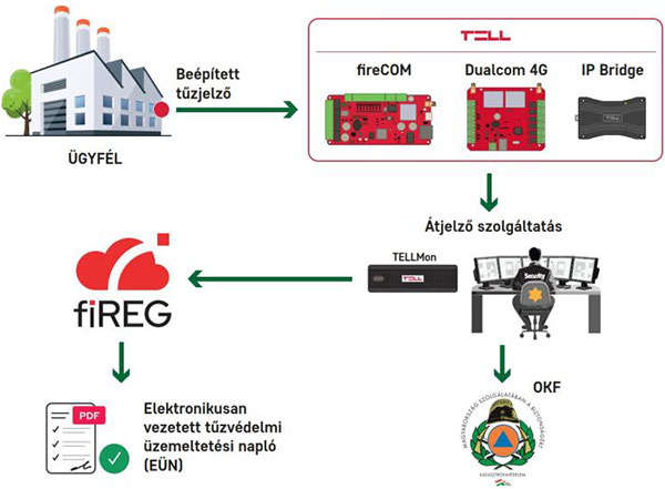 GP: Az alapja az, hogy a TELL minősített tűzátjelző eszközei – a Dualcom, az IP Bridge vagy a hamarosan megjelenő fireCom – közvetlen kapcsolatban állnak a TELL vevőegységgel, amely az adatokat a fiREG elektronikus naplójába továbbítja.
