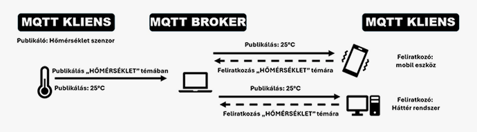 Az MQTT (Message Queuing Telemetry Transport) protokollt az IoT eszközök közötti kommunikáció céljára fejlesztették ki több, mint 20 évvel ezelőtt. Az MQTT-t elsősorban üzenetküldésre és adatcserére használják az IOT és ipari IO eszközök. Érdekessége a protokollnak, hogy közzététel/feliratkozás elven működik. Mit is jelent ez? A küldő és fogadó felek ún. témákon (Topic) keresztül kommunikálnak egymással egymástól függetlenül. A fogadó félnek fel kell iratkoznia arra, vagy azokra a témákra, amelyek „érdeklik” és amennyiben egy ilyen jellegű üzenet megjelenik a rendszerben a publikálók által, úgy azt magukhoz tudják venni. Technikailag ez úgy működik, hogy van a rendszerben egy ún. MQTT Broker, ahol az adatok kicserélődnek a küldő és fogadó felek között.